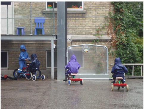 Being outdoors is very important. Children develop gross motor skills as they climb, jump and swing and also social skills as they take turns on equipment and play hide and seek. Montessori believed strongly that children should be in touch with the substance of their world, encouraging work with clay, gardening and growing activities and even building little houses.